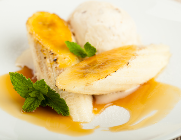 We will carmelize your bananas in butter, brown sugar, seasonings and then ignite them with rum. This will be topped with vanilla ice cream and our special sauce.